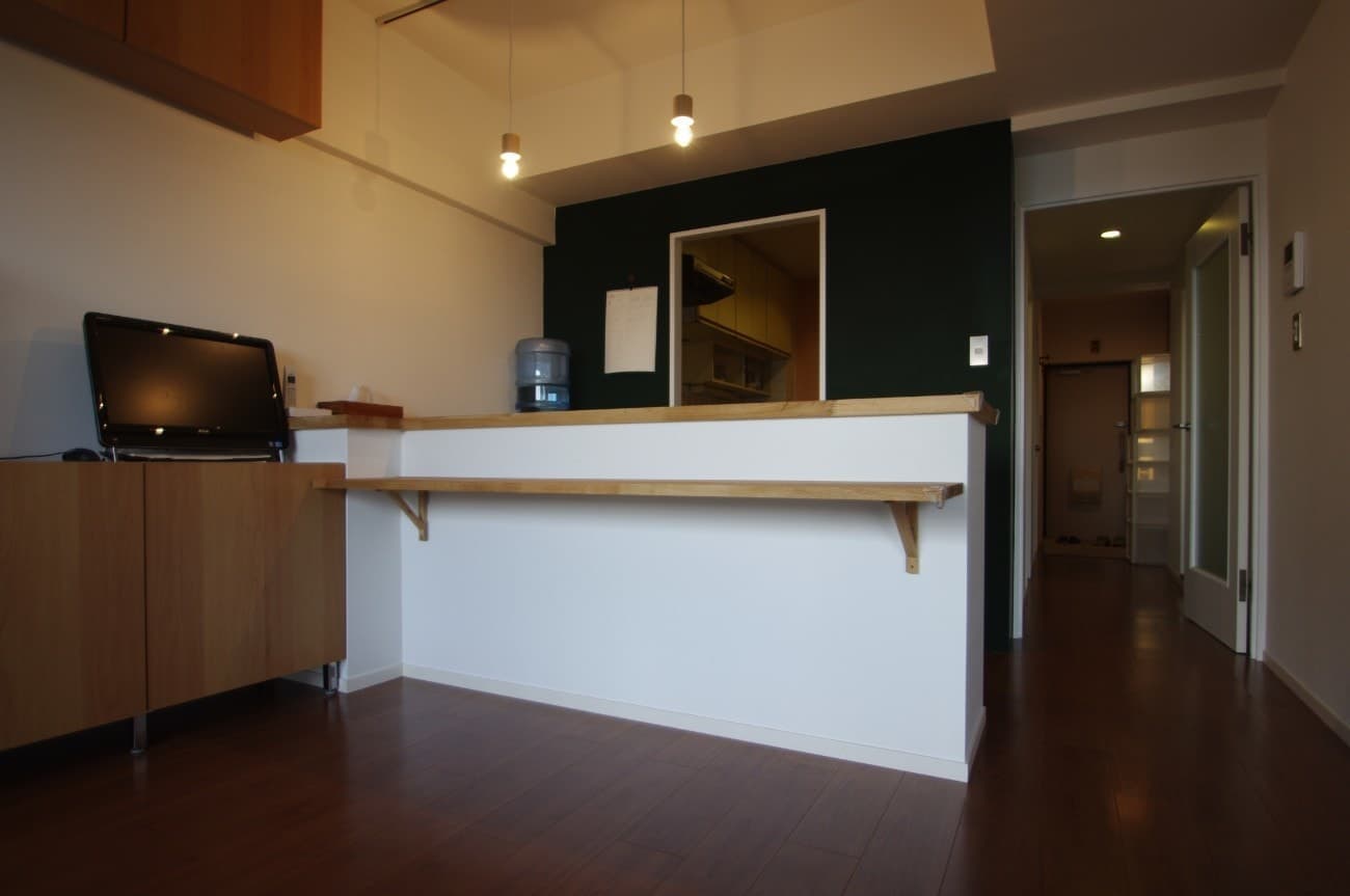 奥の緑色の壁は黒板になっていて、マグネットも付きますよ~♪