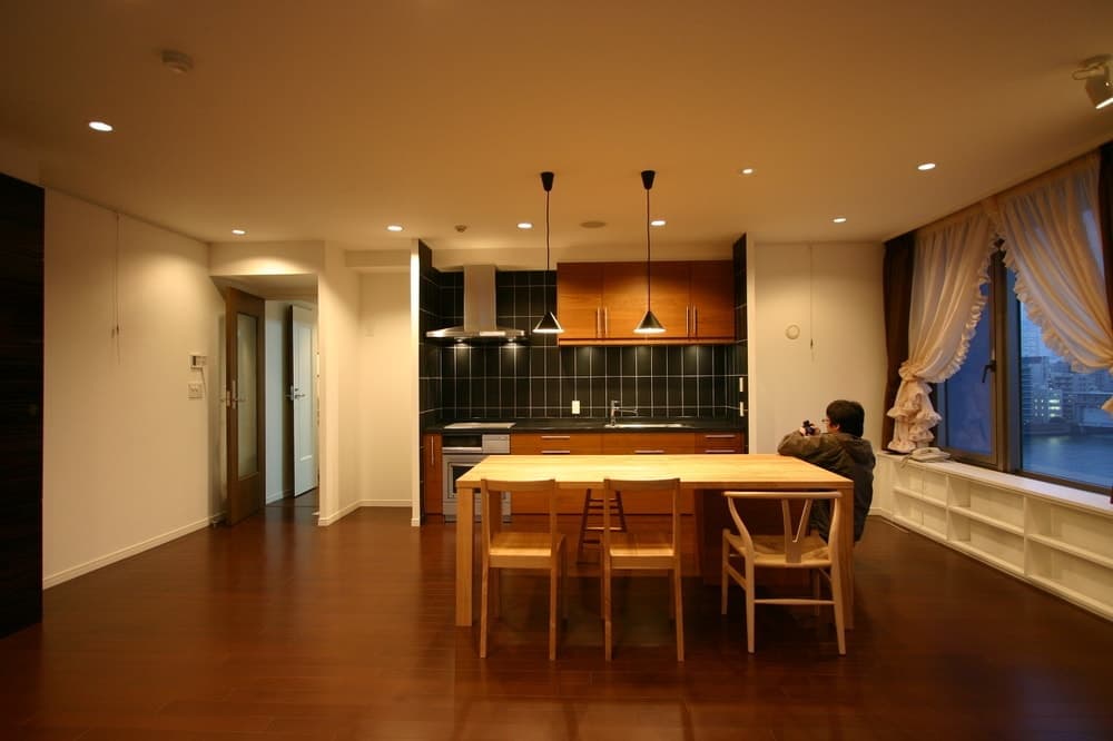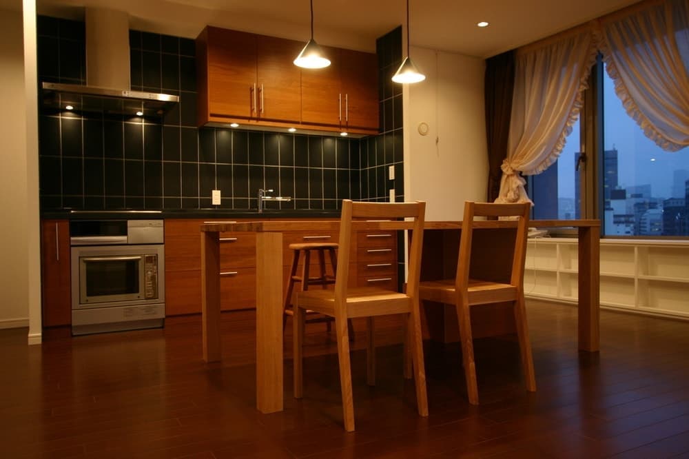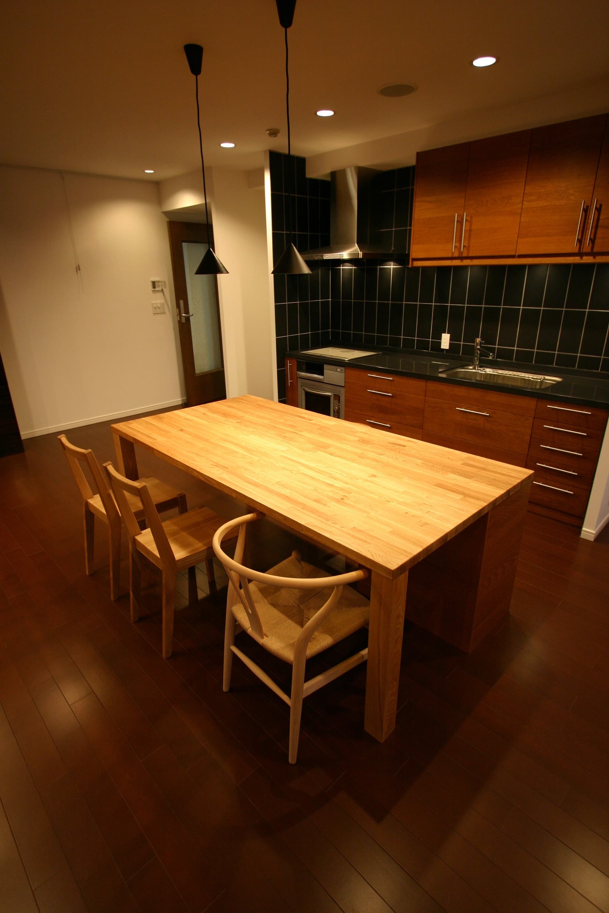 ダイニング用のテーブルも、1m×2mと大型で既製品がありませんでしたので、造作しました。