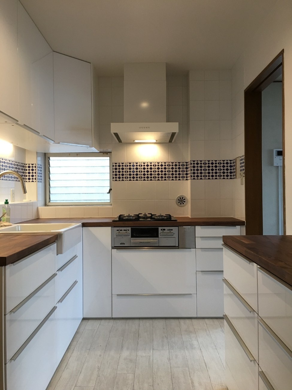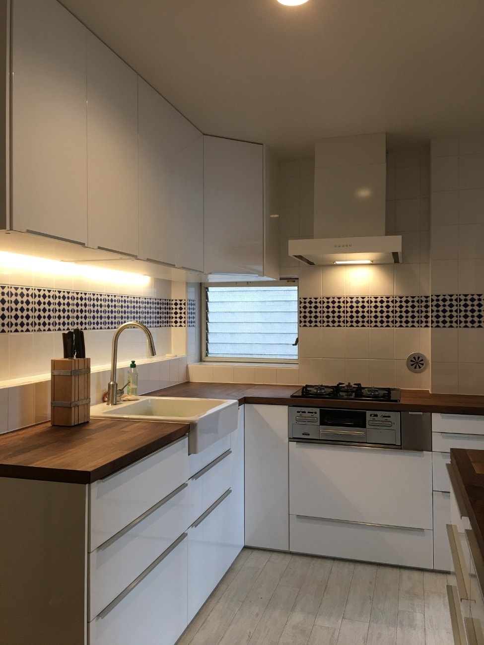 IKEAキッチンに北欧タイルを貼って仕上げました。