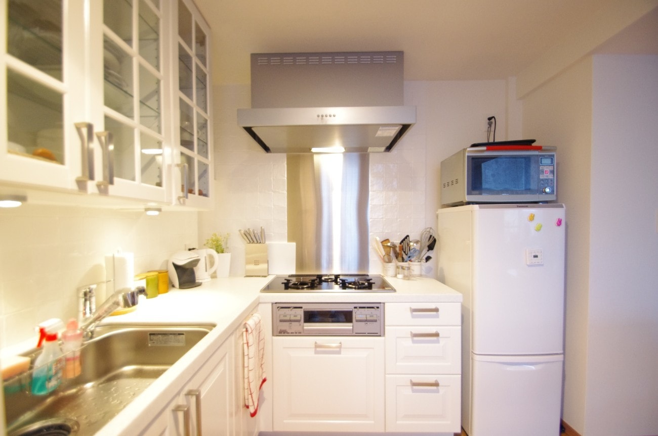 築浅ということもあり、レンジフードとガスコンロは既存のものを再利用しました。壁面にもタイルを利用したこともあり、IKEAの雰囲気をうまくいかせたと思います。