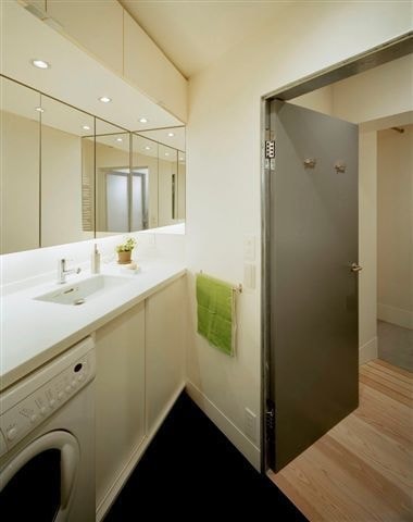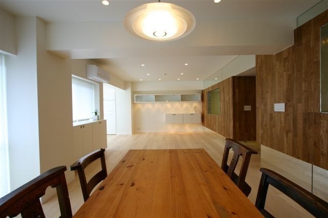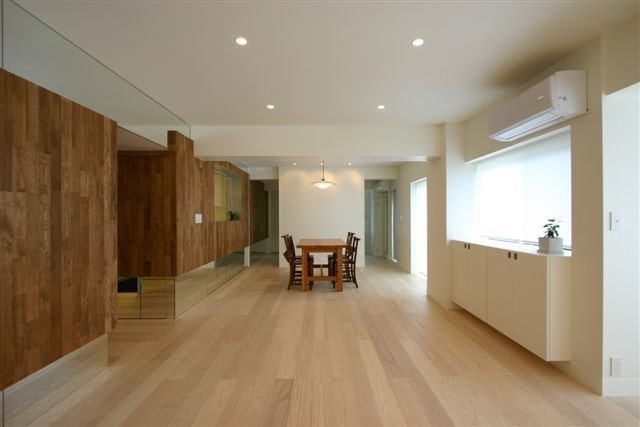 壁面の上下に段差を設け、ミラーを貼ることにより、とても広がりを感じられる、楽しい作品です。
