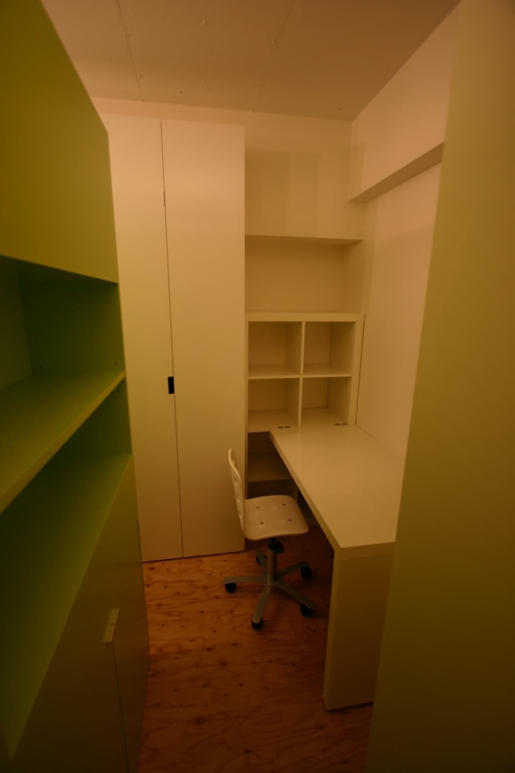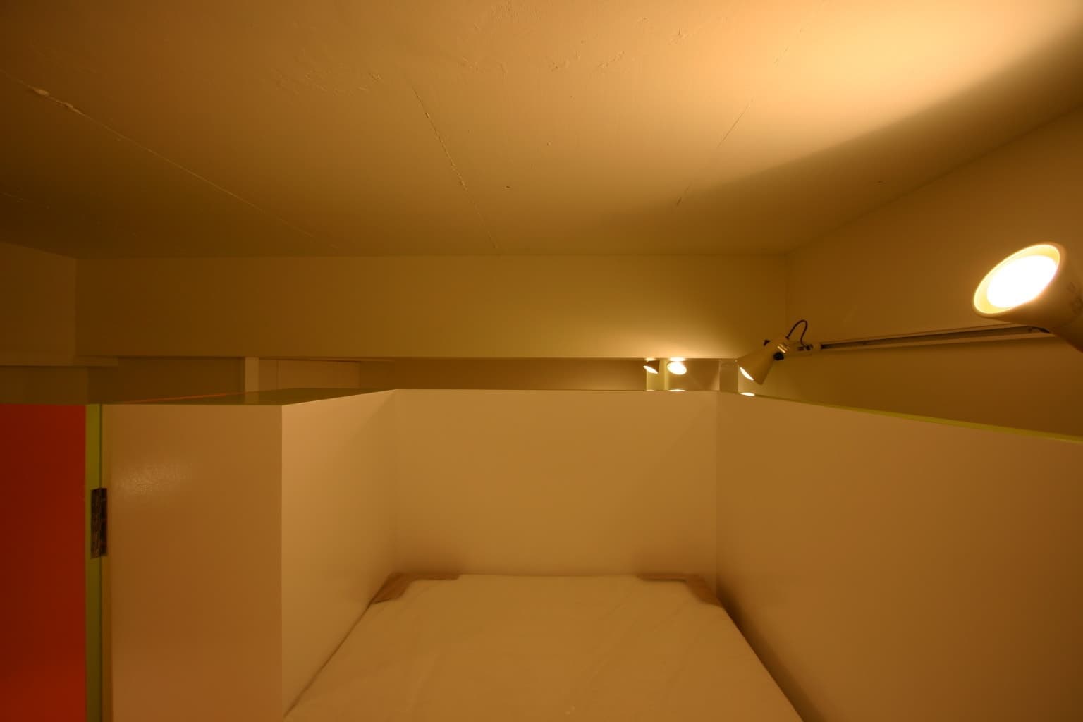ベッドに取り付けられた建具が、ベッド廻りの空間を間仕切る役目も兼ねています。