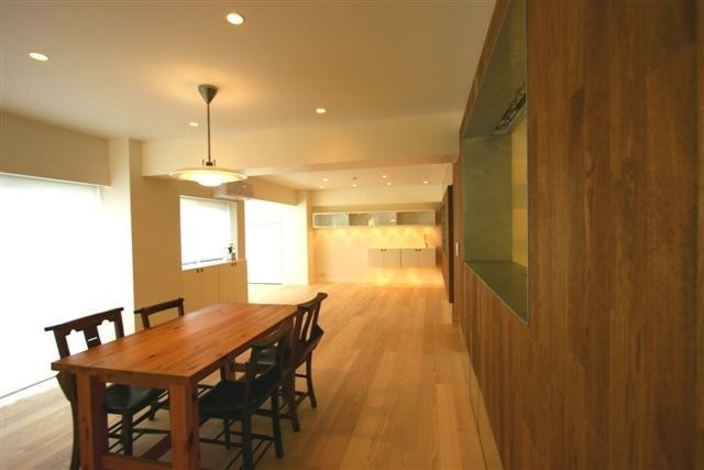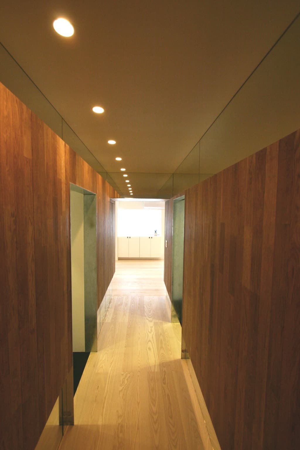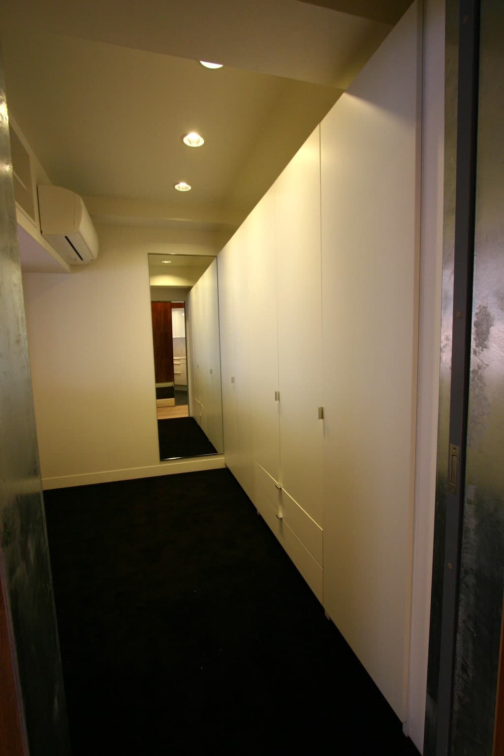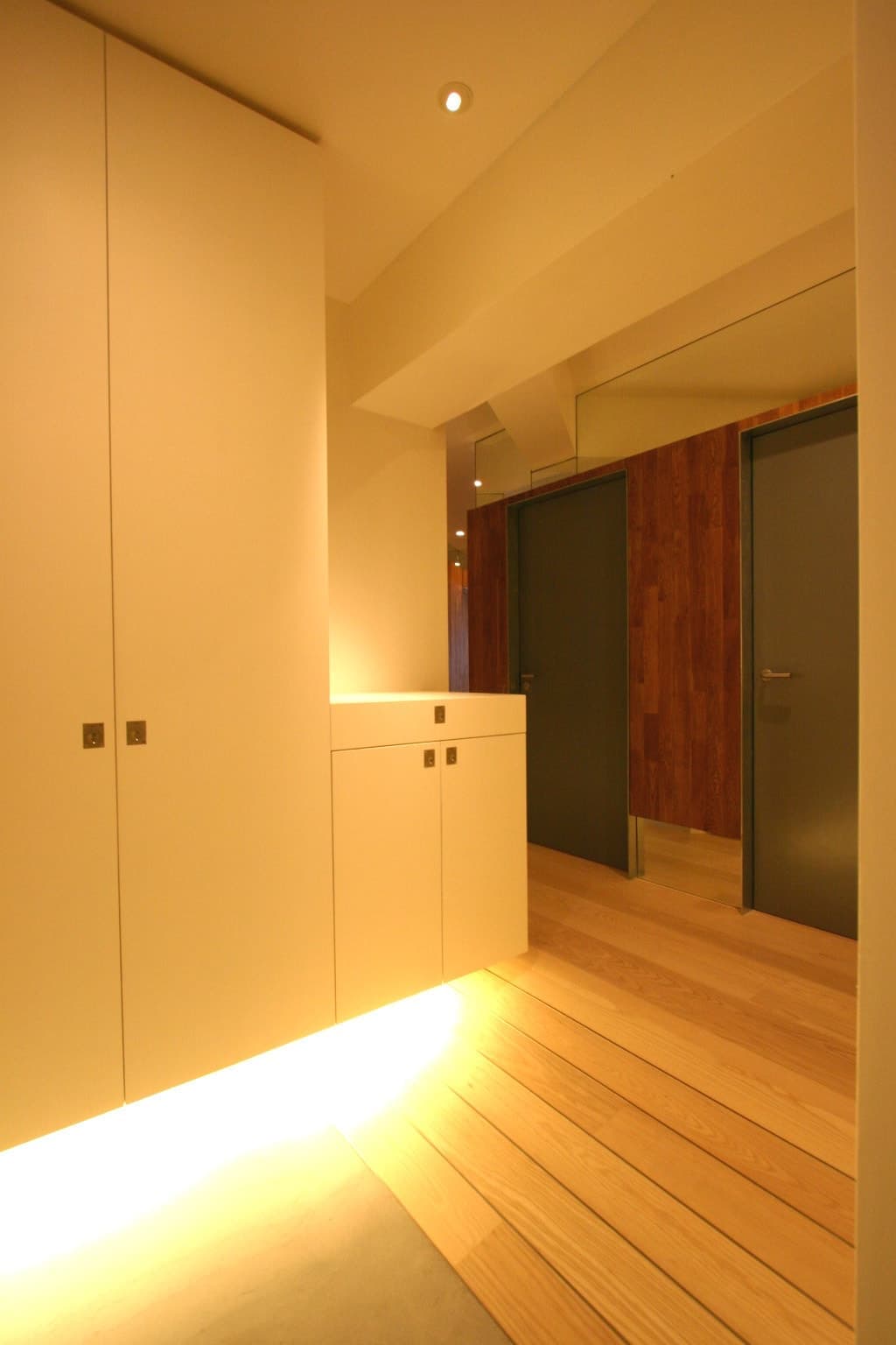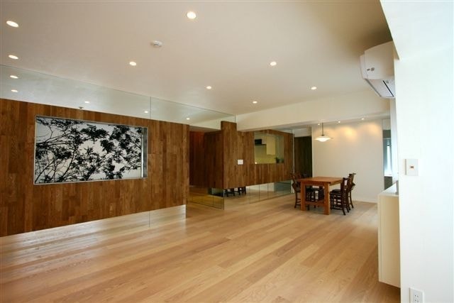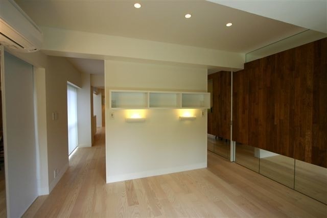 壁面の上下に段差を設け、ミラーを貼ることにより、とても広がりを感じられる、楽しい作品です。