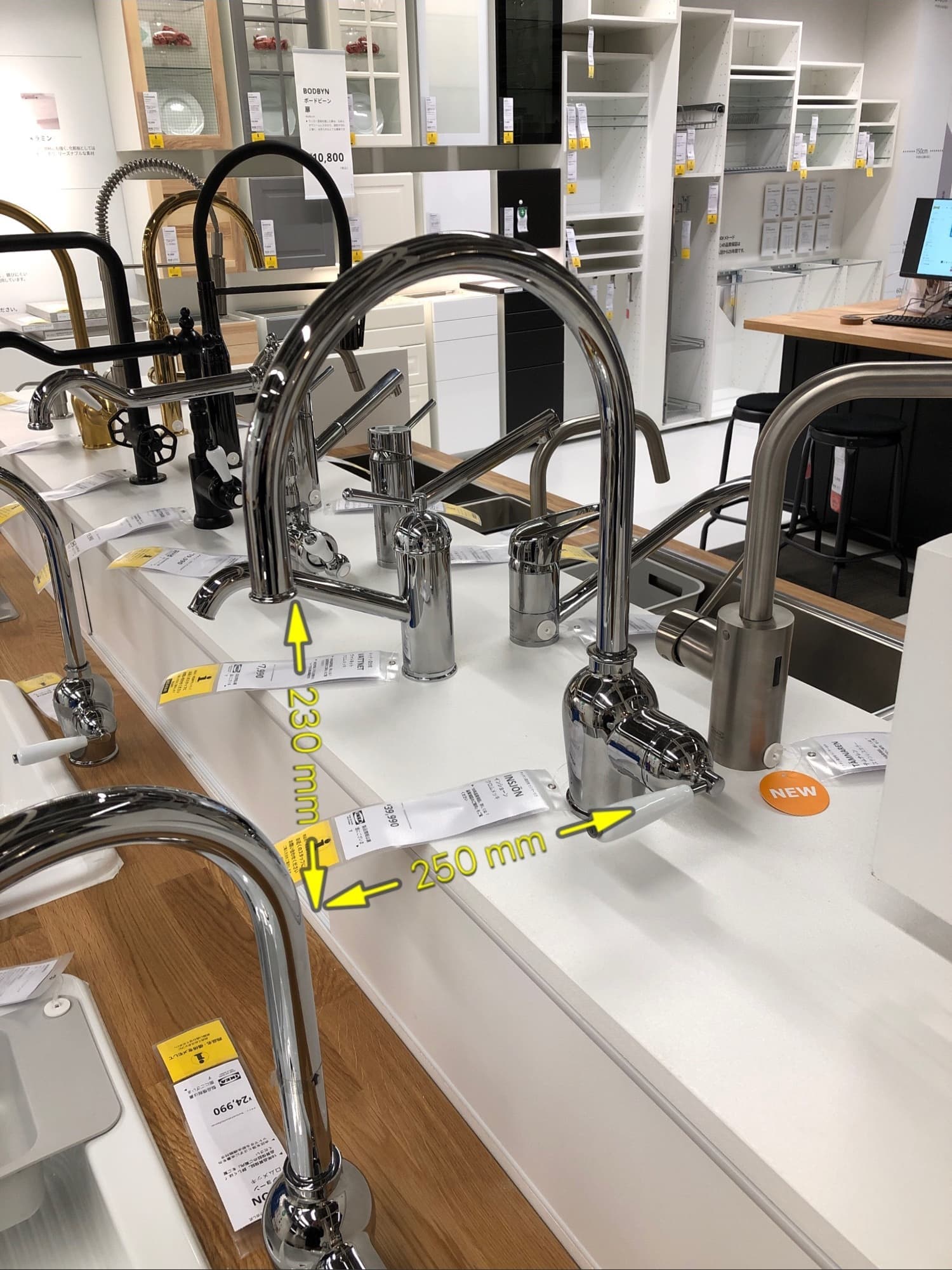 IKEAで販売されている水栓の中から代表的なもののサイズを測ってみました。
